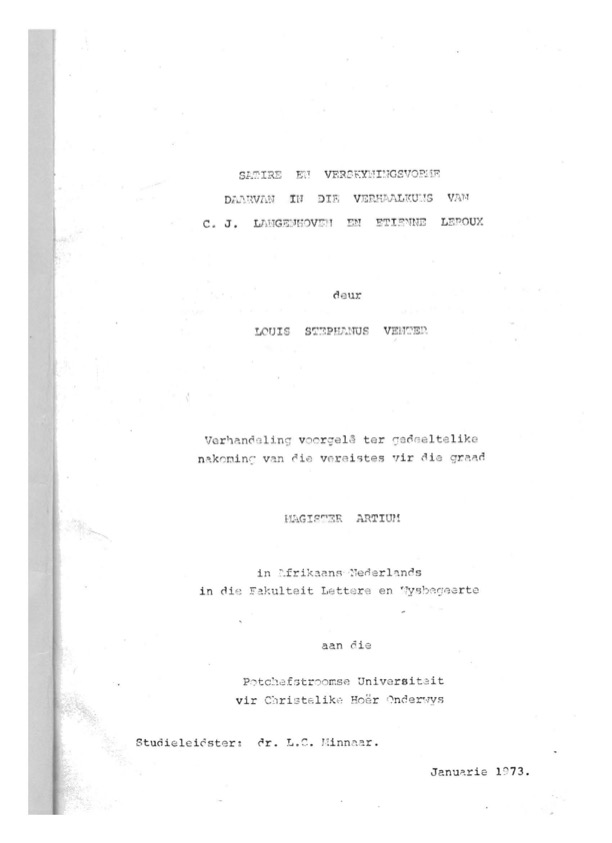 - Satire en verskyningsvorm daarvan in die verhaalkuns van C.J. Langenhoven en Etienne Leroux