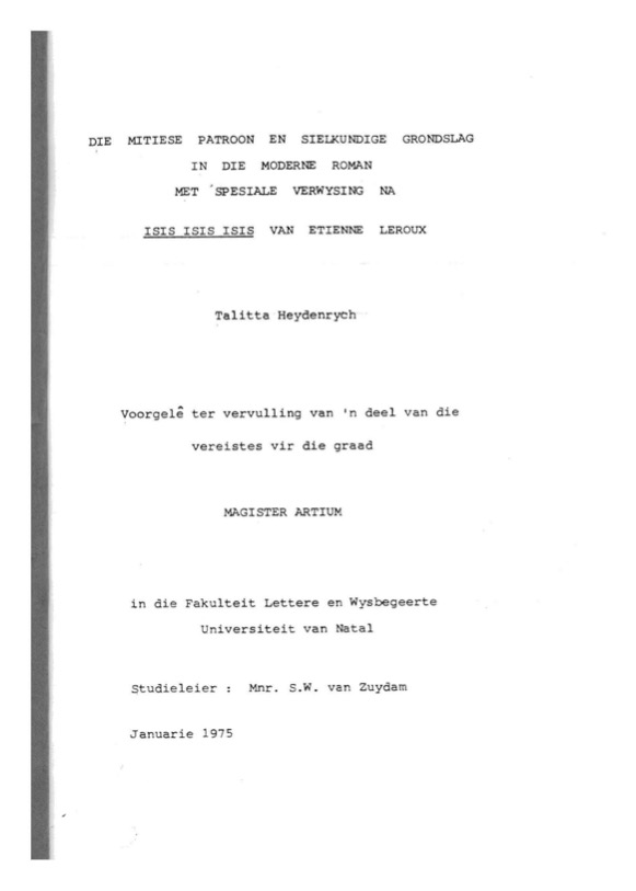 Die mitiese patroon en sielkundige grondslag in die moderne roman met spesiale verwysing na Isis Isis Isis van Etienne Leroux