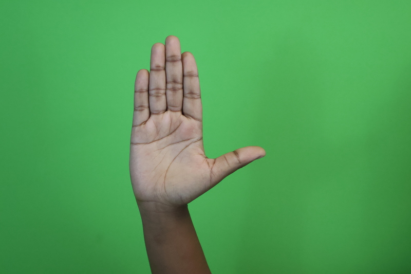 Open B- Flat hand with thumb to the side